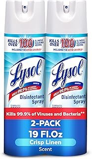 About this item LYSOL DISINFECTANT SPRAY: This household essential is tested and proven to kill 99.9% of viruses and bacteria(1), including the Covid-19 virus, Norovirus, and cold and flu(2). Perfect for any room, this Lysol spray will sanitize, disinfect, and deodorize your home. DISINFECTING AND SANITIZING SPRAY: Lysol disinfects hard non-porous contact surfaces and sanitizes soft surfaces. This multipurpose spray can be used in the home and kitchen, to disinfect toys, couches, counters(3), bathrooms, and over 100 more surfaces. ANTI-BACTERIAL ROOM SPRAY: Lysol Disinfectant Spray kills over 100 illness causing germs in high-touch areas. This multi-purpose spray tackles germs in kitchens, bathrooms, and living rooms, to protect loved ones from the spread of cold and flu viruses. UPHOLSTERY DEODORIZER: Lysol kills 99.9% of odor causing bacteria(1) and helps kill and prevent mold and mildew. Suitable for households with pets and kids, effectively eliminate odors on fabric, with our rugs, couch, furniture, and shoe deodorizer. HOUSEHOLD ESSENTIALS & CLEANING SUPPLIES: Lysol is a leader in disinfection. Shop our range of household cleaning supplies including disinfectant wipes, toilet bowl cleaners, air sanitizers, and laundry sanitizers. The best protection is prevention! FRESH SCENT: Lysol neutralizes tough odors and adds a fresh scent. Use this product daily to sanitize your soft surfaces. Leave behind a crisp linen scent, effectivley replacing odors and refreshing your space with a clean fragrance. (1)Use as directed, (2)Lysol is proven to kill the SARS-CoV-2 virus in 15-seconds and expected to have similar efficacy vs all strains and variants (3)Rinse all food contact surfaces and plastic toys with water after use. Not recommended on brass, copper or aluminum surfaces (4)Kills Rhinovirus Type 39 and Influenza A Virus (H1N1) on hard, non-porous surfaces in 30 seconds Show more › See more product details
